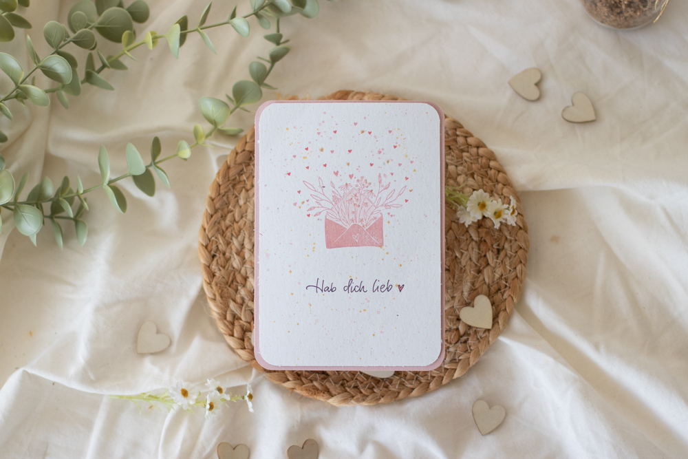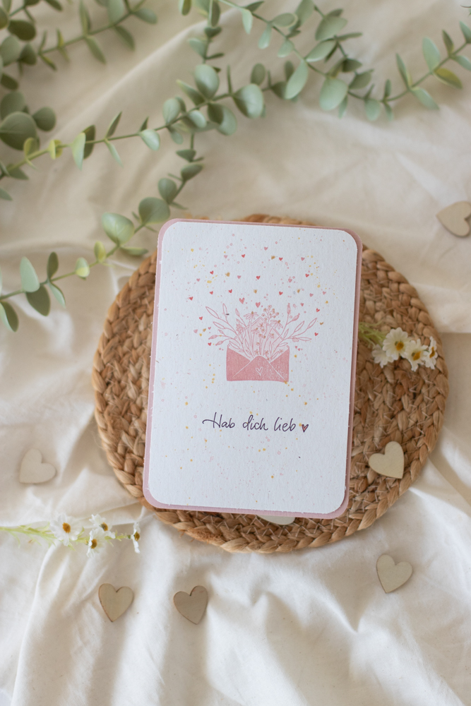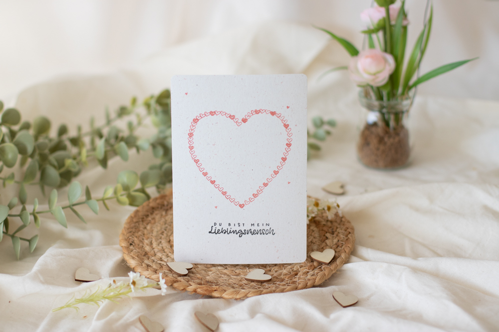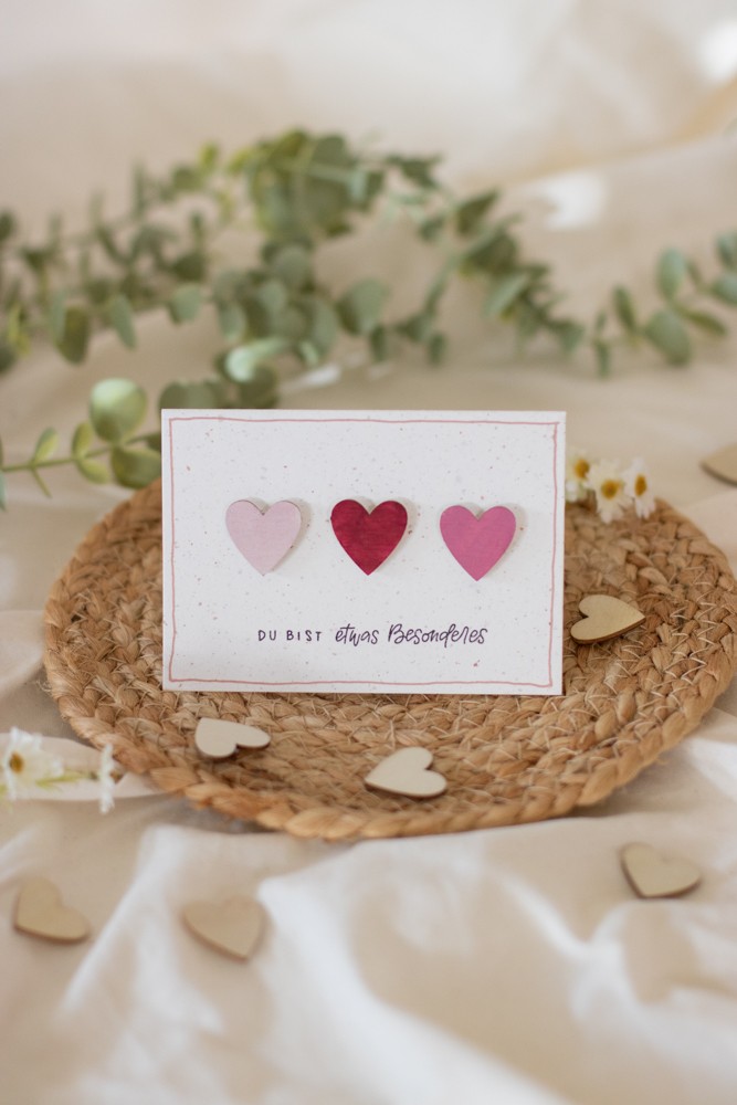 Die kleinen Herzen werden locker verteilt – genau das macht die Karte modern und leicht.
