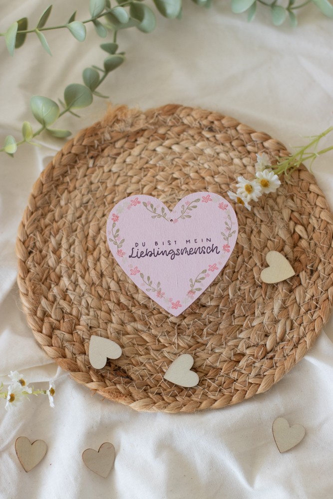 Stemple den Schriftzug „Du bist mein Lieblingsmensch“ in die Mitte oder von der Mitte weg in die obere Hälft. (je nach Geschmack)