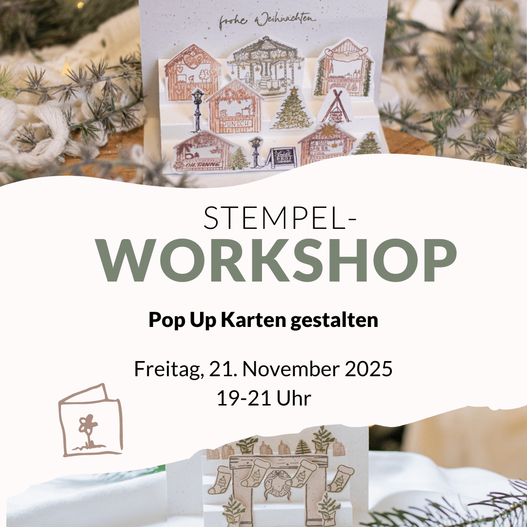Gönn dir eine kreative Auszeit vom Alltag und lerne in unsrem Workshop, wie du mit Stempeln individuelle und einzigartige Karten gestalten kannst. Du wirst überrascht sein, wie einfach es ist und welche tollen Ergebnisse du erzielen kannst. Gönn dir eine Auszeit und nutze die Chance, deine eigenen Ideen umzusetzen. Du wirst nicht nur Freude daran haben, sondern auch noch viele weitere Karten für deine Liebsten für Weihnachten kreieren können.