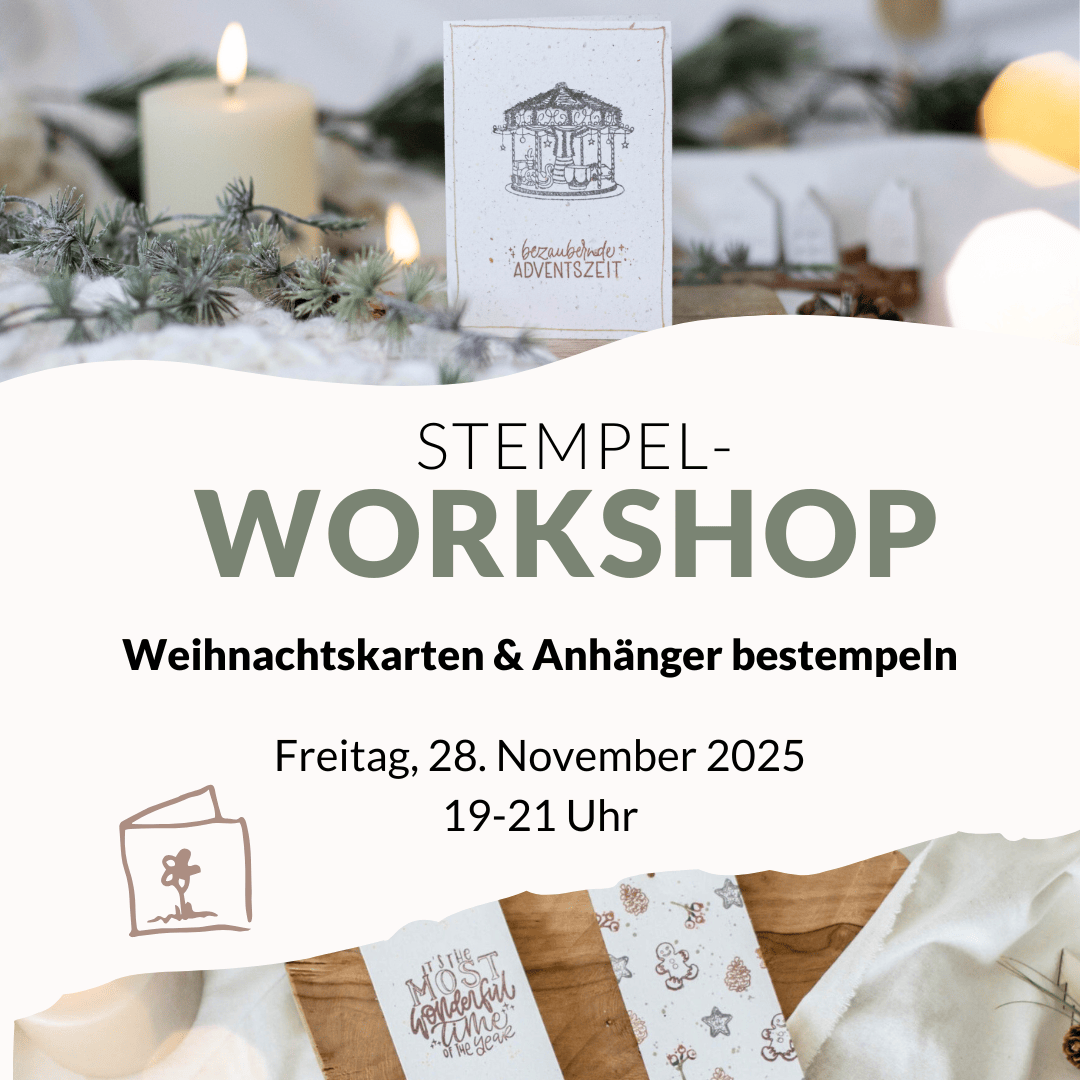 Gönn dir eine kreative Auszeit vom Alltag und lerne in unsrem Workshop, wie du mit Stempeln individuelle und einzigartige Karten gestalten kannst. Du wirst überrascht sein, wie einfach es ist und welche tollen Ergebnisse du erzielen kannst. Gönn dir eine Auszeit und nutze die Chance, deine eigenen Ideen umzusetzen. Du wirst nicht nur Freude daran haben, sondern auch noch viele weitere Karten für deine Liebsten für Weihnachten kreieren können.