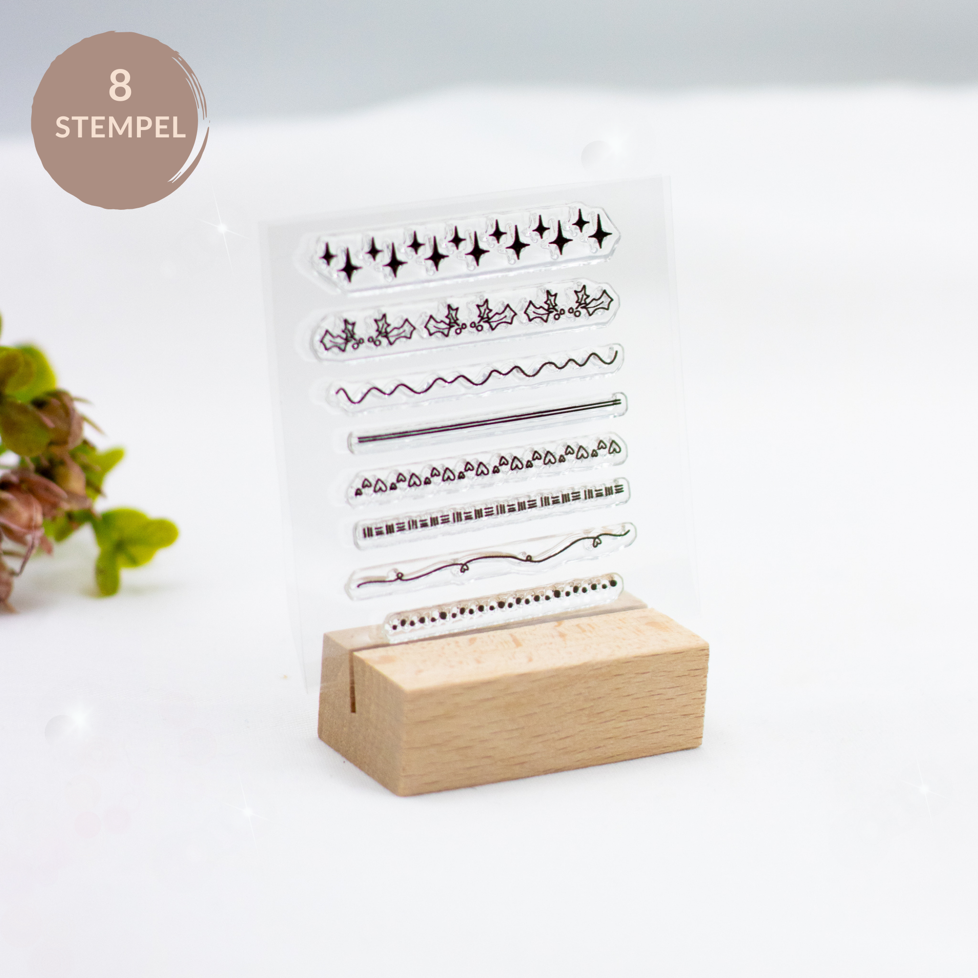 1 Stempelset Bordüren mit 8 einzelnen durchsichtigen Stempeln
