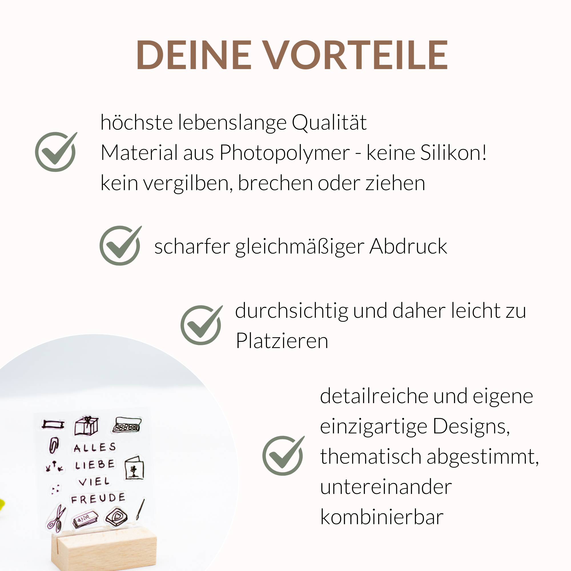 1 Stempelset Freulebnis Style mit 15 einzelnen durchsichtigen Stempeln