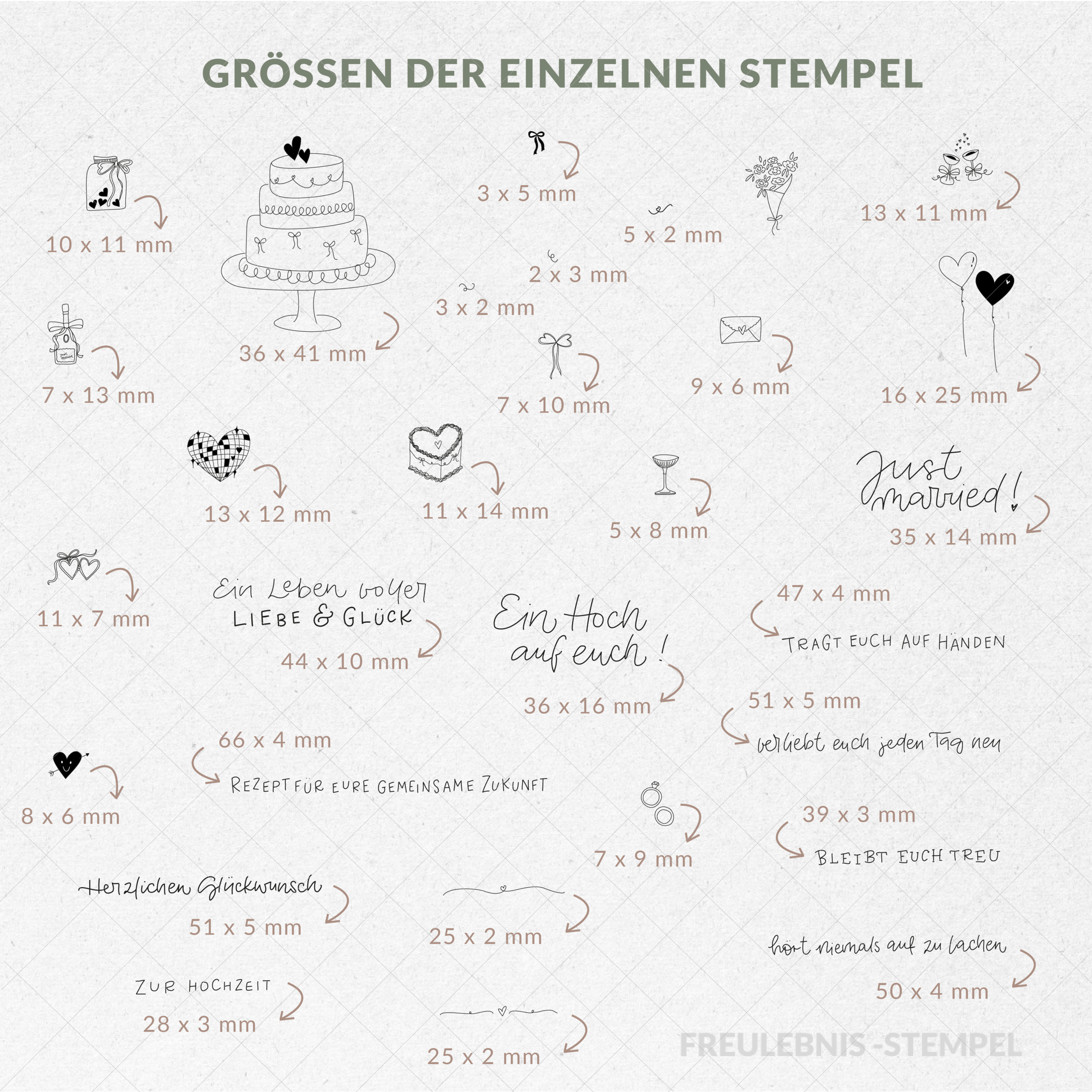 Von liebevollen Glückwünschen bis hin zu verspielten Details rund um Hochzeit und Liebe – dieses Set begleitet dich vom ersten Herzklopfen bis zum großen Tag und darüber hinaus.