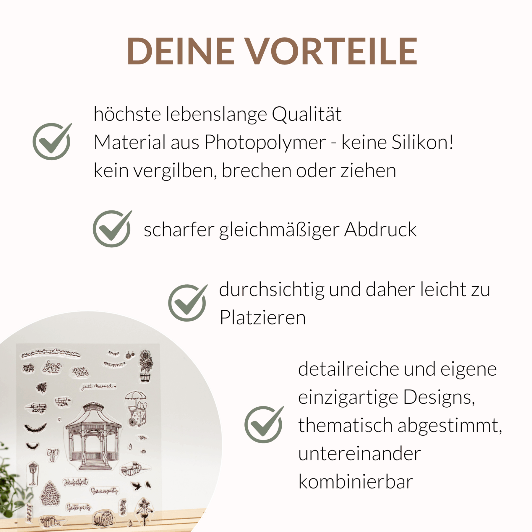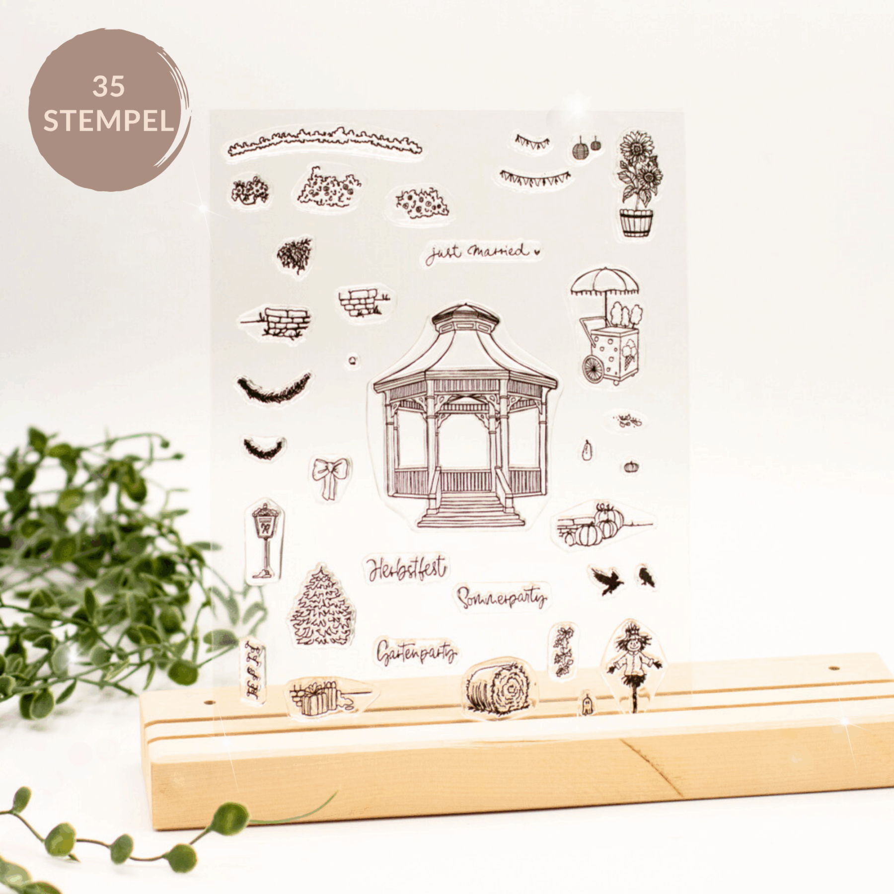 1 Stempelset Pavillon mit 35 einzelnen durchsichtigen Stempeln