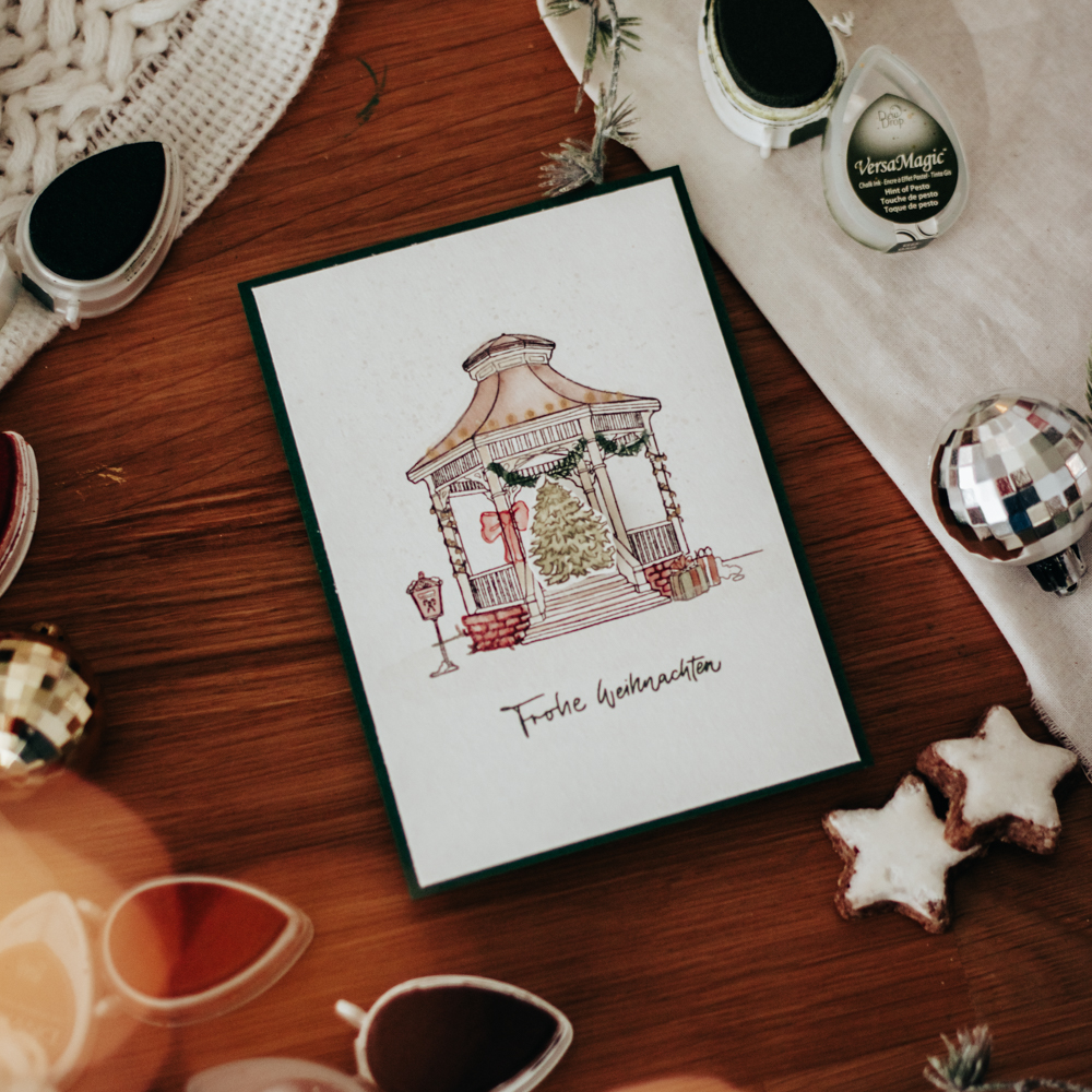 Mit dem Stempelset „Pavillon“ erschaffst du dein ganz eigenes Stars-Hollow-Momentchen – dieses liebevoll illustrierte Motiv ist inspiriert vom ikonischen Pavillon aus den Gilmore Girls und lässt dich das ganze Jahr über kreative Szenen gestalten.