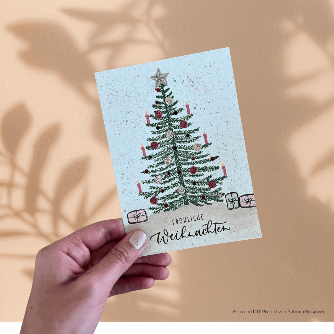 Ob du ihn schlicht in Naturtönen stempelst oder mit Kugeln, Sternen und Schleifen verzierst – jede Karte wird zu einem kleinen Highlight unter dem Weihnachtsbaum. Das Motiv ist ideal für alle, die schnell beeindruckende Ergebnisse erzielen wollen – ganz ohne viel Material oder Erfahrung.