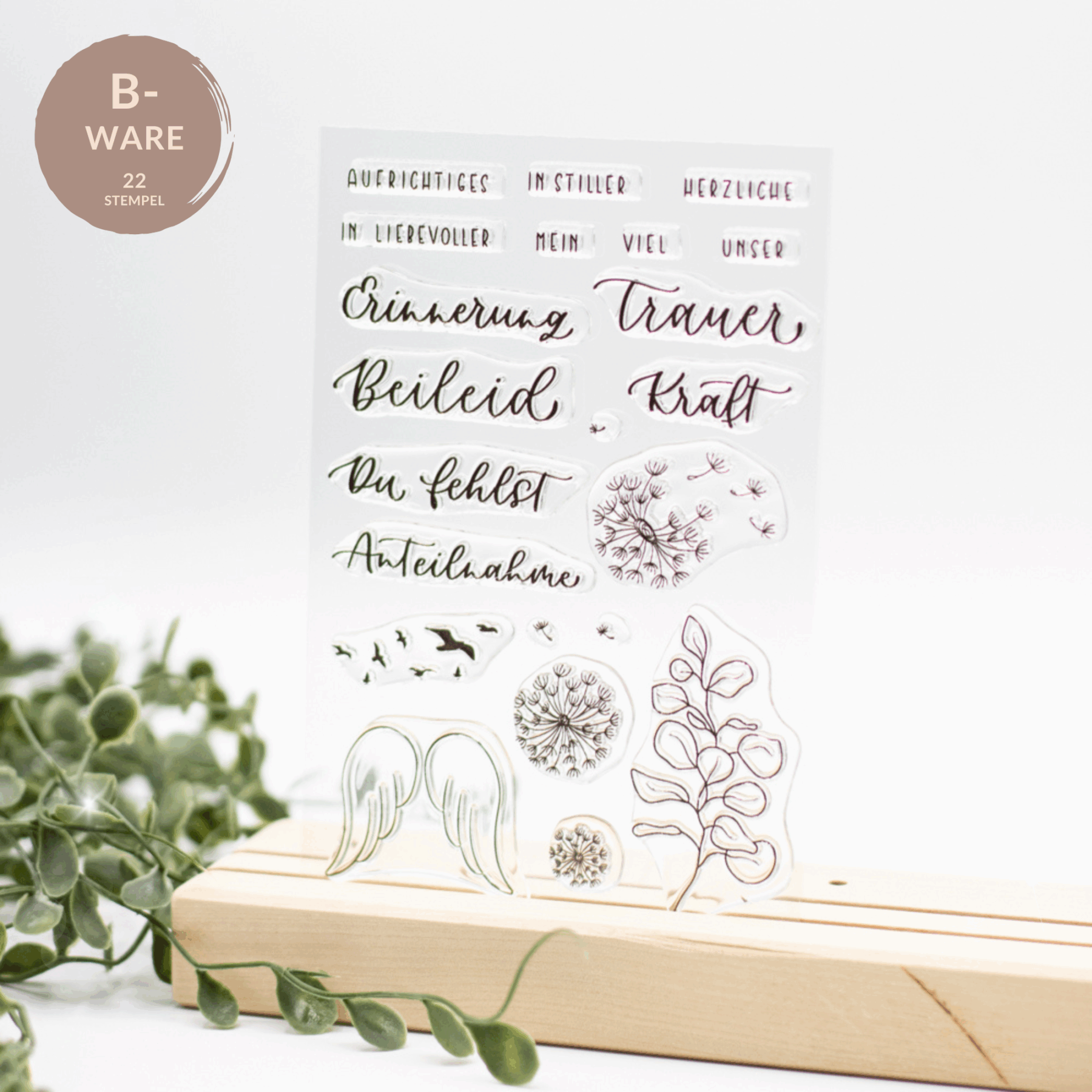 In Momenten des Abschieds sind es oft die kleinen, stillen Gesten, die Trost spenden. Eine handgestempelte Karte, ein liebevolles Wort, ein zarter Zweig – sie sagen: Ich denke an dich. Mit unserem Stempelset Trauer möchten wir dich behutsam dabei unterstützen, persönliche Kondolenzkarten, Erinnerungsstücke und stille Grüße zu gestalten.