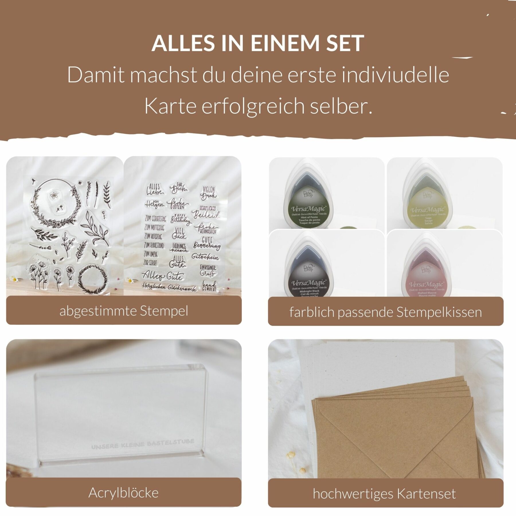 - viele weitere kreative Möglichkeiten mit dem Stempelset und Materialien, die du einzeln nachbestellen kannst